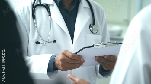 Trabajo en equipo profesional y confianza del paciente en el concepto de hospitalidad del hospital. Médicos y pacientes se sientan y hablan con el paciente sobre la medicación.