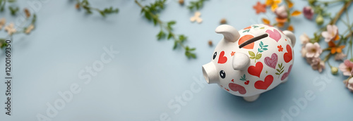 Cochon tirelire avec des cœurs, exprimant le don et la charité