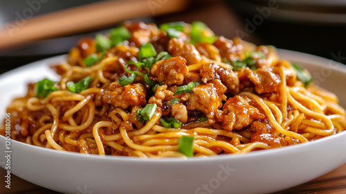 Chinese food and Asian cuisine menu cover with noodles and chicken or pork, vector poster. Chinese restaurant traditional lunch and dinner food, Sichuan pork with chicken rolls and battered lamb