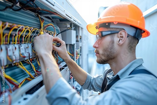 Close-Up: Young Technician Working on Air Conditioner Repair