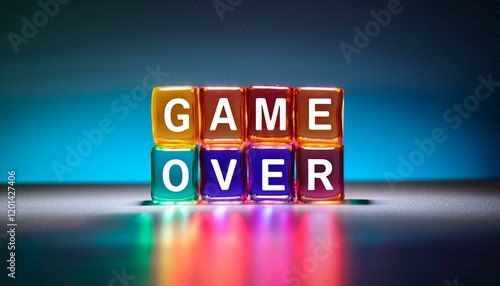 試合終了のゲームオーバーを意味する英語のフレーズGAME OVERの文字が書かれたキューブブロック。 aiで生成