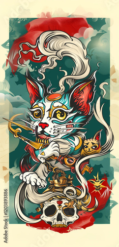 Portret kota z charakterem, wojownik ninja, samuraj