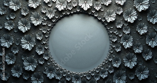 Szare tło z organicznym ornamentem dookoła. Do slajdów i prezentacji. Podłoże z motywami graficznymi.