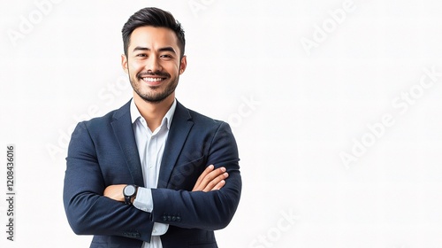 Confident Asian Male Economist Posing with Arms Crossed in Portrait