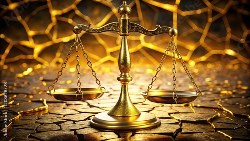 Abstract long exposure: a cracked golden scale of justice, artistically portraying broken law.