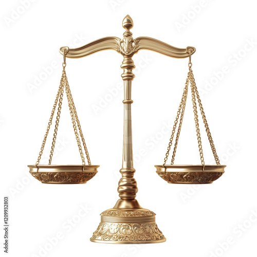 a classic golden balance scale. symbolizing justice and fairness. with two shallow bowls suspended from chains on either side the ornate design and polished finish convey a sense of authority and trad