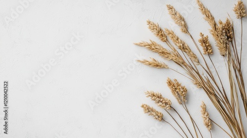 Dried wheat stems artwork mockup in minimal frame nature inspired decor bright white background