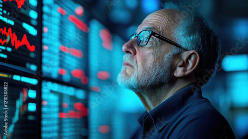 Crisis of a depressed businessman analyzing financial loss corporation headquarters stock market environment introspective viewpoint on economic bankruptcy