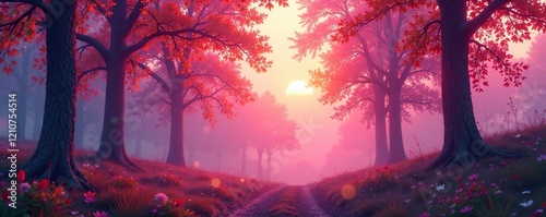 Soft pink hues of dawn softly fall upon the trees, Serene, Natural