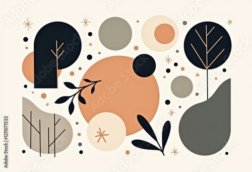 ミュートされた色の幾何学模様:シンプルな線と形を持つミニマリストアート。純粋な白の上のモダンで洗練されたシームレスデザイン。