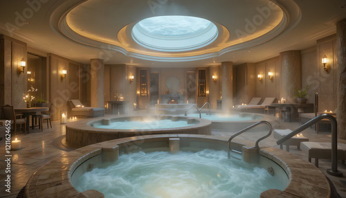 Serene Spa Sanctuary: Luxurious Hydrotherapy Under a Tranquil Skylight