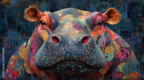 Playful, Textured pattern, a hippopotamus designed with engaging textures and lively patterns, creating a fun and visually appealing depiction.