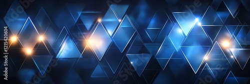 A vibrant abstract background featuring interconnected blue triangular shapes illuminated by soft lights, creating a dynamic and engaging visual effect.