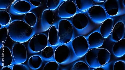 motif répétitif avec alvéoles noires et bleu futuriste et organique