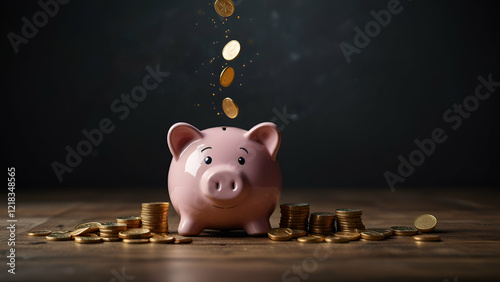 Piggy Bank Filling Up with Coins Concept of Financial Savings and Wealth Building.