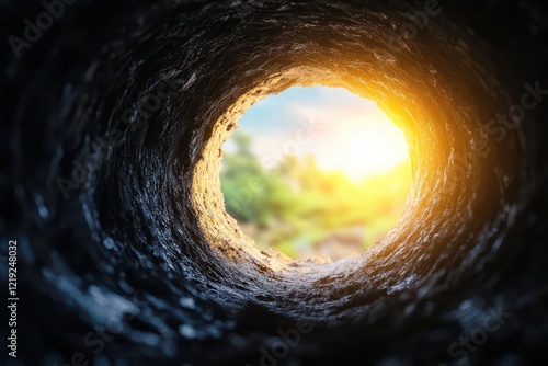 Light Emerging from a Tunnel into a Natural Landscape Scene