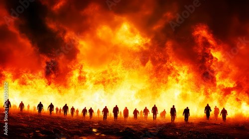 Sinners in the fire pit of hell, enduring endless suffering
