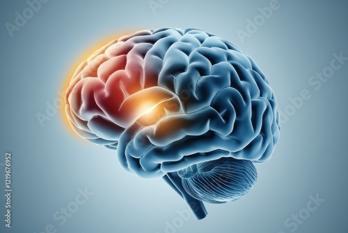 Human Brain Anatomy: 3D Model of the Brain Highlighting Specific Regions