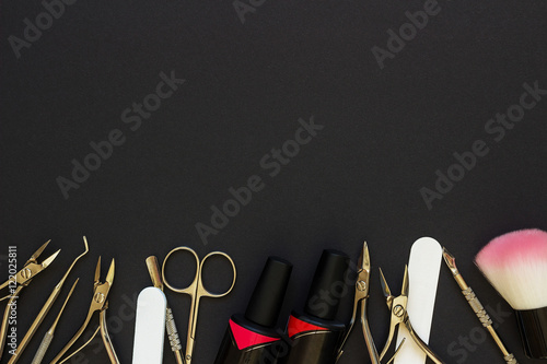 Manicure tools on the dark table