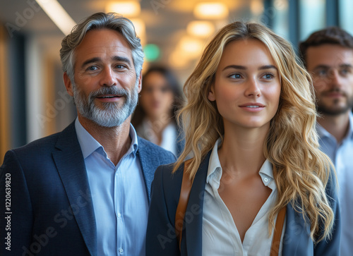 Grupka osób, pracownicy biurowi, ludzie z korporacji gestykulują żywo rozmawiając, omawiając sprawy biznesowe, zagadnienia dnia.