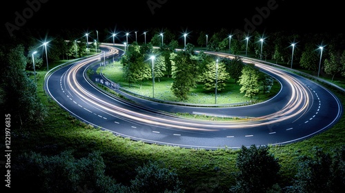 Night traffic on circular highway
