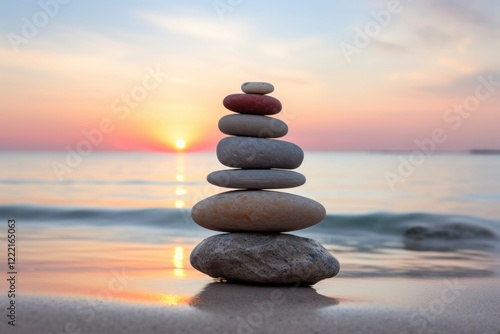 Spirituality healing gray stones Stacking spirituality outdoors sunset.