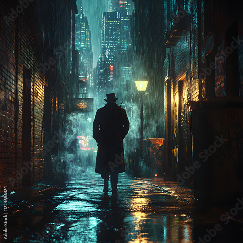 Silent Shadows of Neon Nights: The Detective's Pursuit in the Alley Cat's Maze