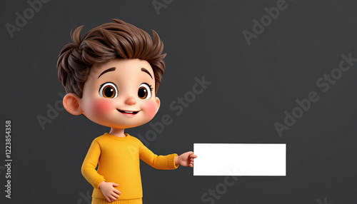Adorable Cartoon Boy Holding Blank Sign