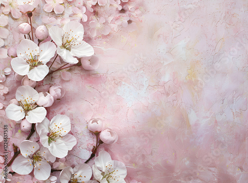Delikatne kwiaty wiśni na pastelowym różowym tle.