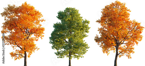 Liriodendron tulipifera trees isolated sunset lighting png on a transparent background premium cutout (tulip tree, tulipwood, whitewood, fiddletree, lynn-tree, hickory-poplar, and yellow-poplar)