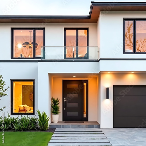 Modern Dream Home: Luxurious Contemporary House Exterior at Dusk