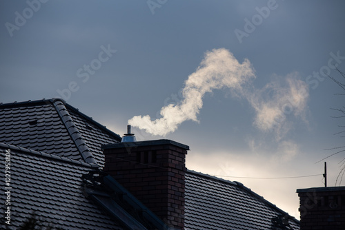 Biały dym lecący z komina.