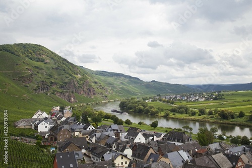 River Moselle and the vineyards around Uerzig, Rhineland-Palatinate, Germany, Europe, PublicGround, Europe
