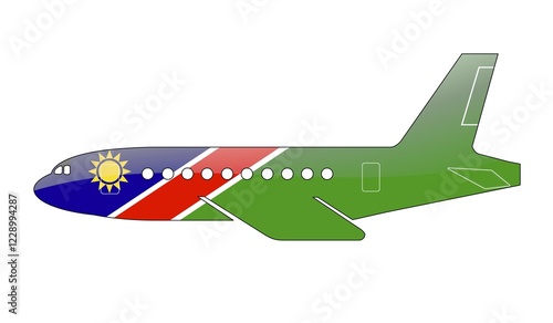 The Namibia flag painted on the silhouette of a aircraft. glossy illustration