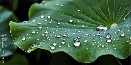Close up of a lotus leaf showcasing its hydrophobic tendencies repelling water droplets, AI generated