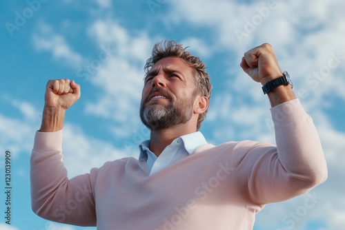 Triumph und Erfolg – Mann feiert seinen Sieg