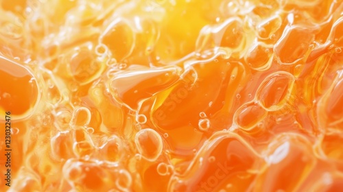 Close-up of vibrant orange juice, showcasing its texture and deliciousness.