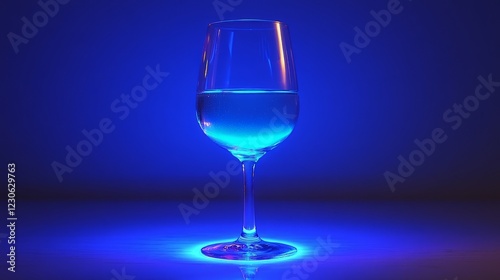 A wine glass illuminated by blue light, casting a modern and elegant ambiance. Perfect for dining and entertaining themes.