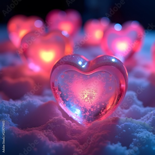 Mesmerizing Heart-shaped Frozen Objects in Neon Glow