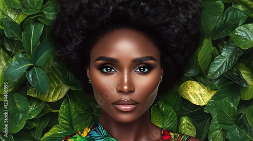 Eco-Friendly Fashion Editorial with Model Surrounded by Greenery