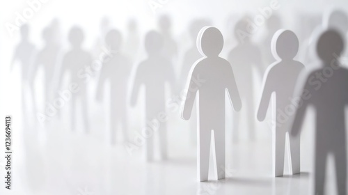 A simple white paper cutout of human figures standing in rows, representing the concept of community and collaboration.