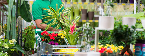 Banner Kunde mit Einkaufswagen im Gartencenter