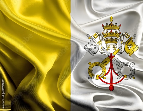 Vibrant Vatican City flag waving with luxurious satin texture - Patriotic and cultural symbol