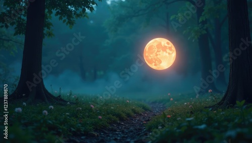 A delicate, glowing orb floats above a misty, moonlit forest floor, forest floor, mist, ethereal glow