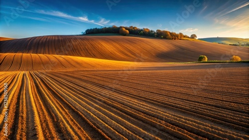Golden Hour on a Ploughed Field, Rolling Hills and a Serene Sunset