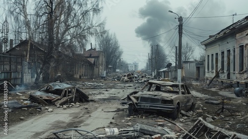 Devastation in a ukrainian town shattered homes, smoke filled skies, and a fragmented community