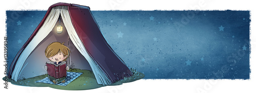 niño leyendo un libro de noche