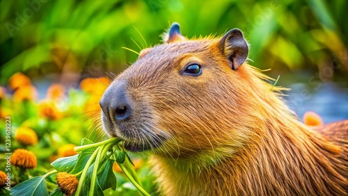 Capybara, World's Largest Rodent, Enjoying a Meal