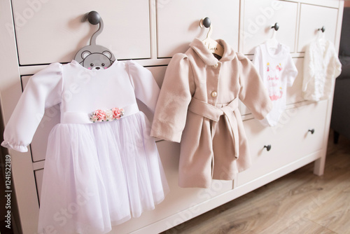 Garderoba młodej księżniczki. Biała sukieneczka i płaszczyk