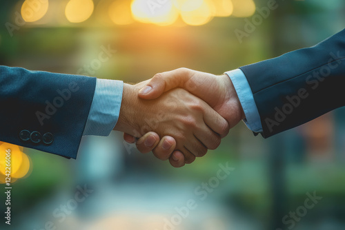 Two men shaking hands in a professional setting demonstrating agreement and collaboration between business partners or colleagues